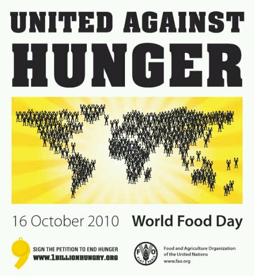 Hej! Idag påminns vi om att nästan en miljard människor hungrar, trots att det finns mat så att det räcker till alla. Välståndet ökar i världen, men många får fortfarande inte sina grundläggande behov av näringsrik mat tillgodosedda.