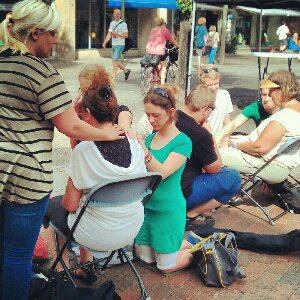 Fråga om du kan lägga handen på deras axel eller där de har ont. Sätt inte igång med handpåläggningen innan du bett om lov, folk kommer tycka att du är creepy.