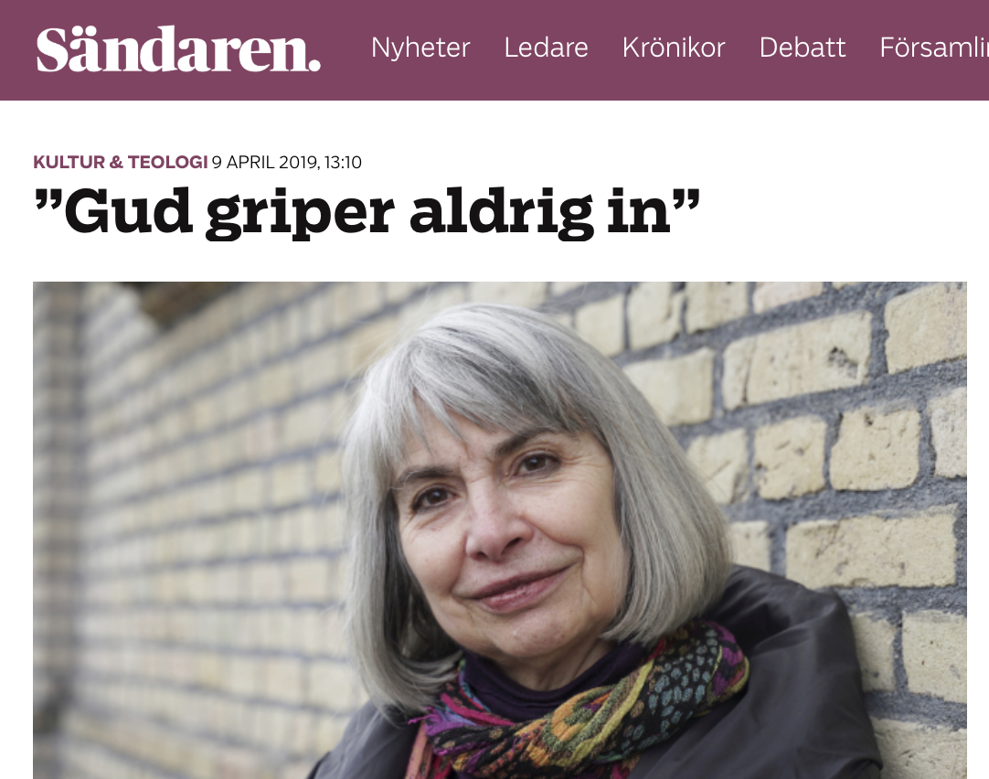Ni får ursäkta att jag plockar upp en gammal boll denna tisdagsmorgon, men Sändarens intervju med feministteologen Catherine Keller i april är något jag länge har velat kommentera. Reportaget gjordes i samband med att hon föreläste i Betlehemskyrkan i Göteborg.