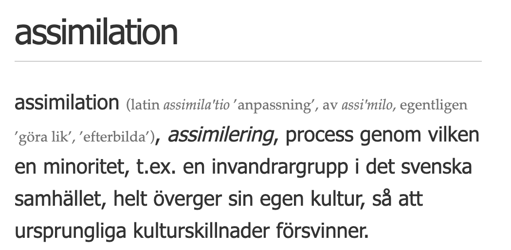 Anledningen till det är att assimilation eliminerar kulturer, snarare än att införliva deras existens i samhällskroppen, som Nationalencyklopedin påpekar: