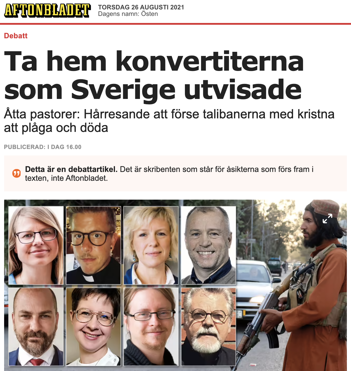 Flera av de kristna som jagas befann sig i Sverige för inte så länge sedan men utvisades för att Migrationsverket menade att Afghanistan skulle vara säkert för dem. De hade fel, och precis som man nu evakuerar personer som har hjälpt den svenska militären måste människor som Sverige felaktigt har utvisat evakueras. Vi påpekar i debattartikeln att flera svenska församlingar har fortsatt kontakt med afghanska konvertiter och kan hjälpa UD hitta dem.