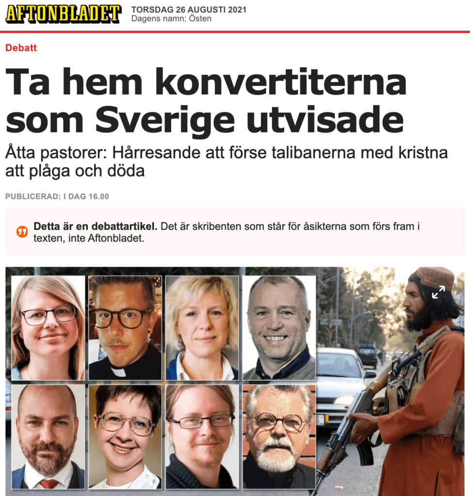 Kort efter att Aftonbladet hade publicerat vår debattartikel om att rädda livet på afghanska konvertiter som Sverige utvisat till talibanernas våld började ett gäng ”Sverigevänner” argumentera för att det ska vi inte alls göra. De menar att det är bättre att talibaner dödar människor än att de evakueras till Sverige: