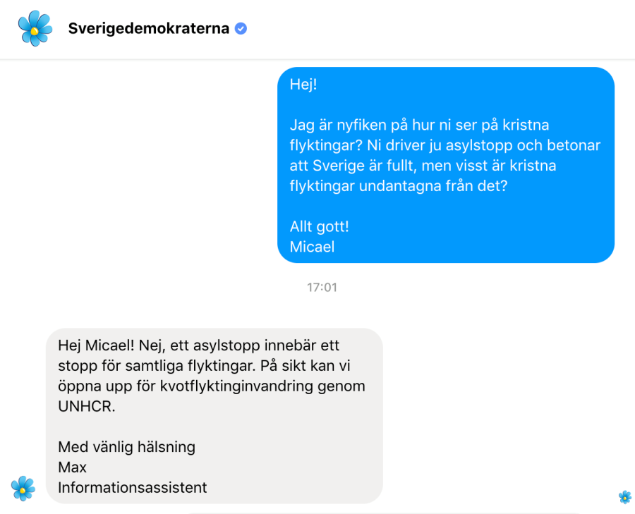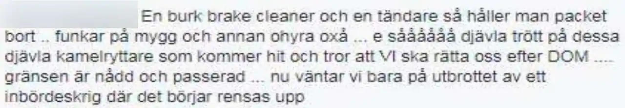Det här är människor SD har förtroende för. Precis som de har förtroende för riksdagsledamoten Markus Wiechel även efter det avslöjades att han kallade afrikaner för ”aph*lveten”. Det är en myt att rasister skulle sparkas ut av SD – tvärtom utgör de en viktig stomme för partiet. Man kan ju inte motivera att utvisa människor till krig och förföljelse om man inte känner en avsky för dem. SD som nu går till kyrkoval vill ha fullständigt asylstopp, vilket innebär att INGEN får asyl – kristna konvertiter inkluderade.