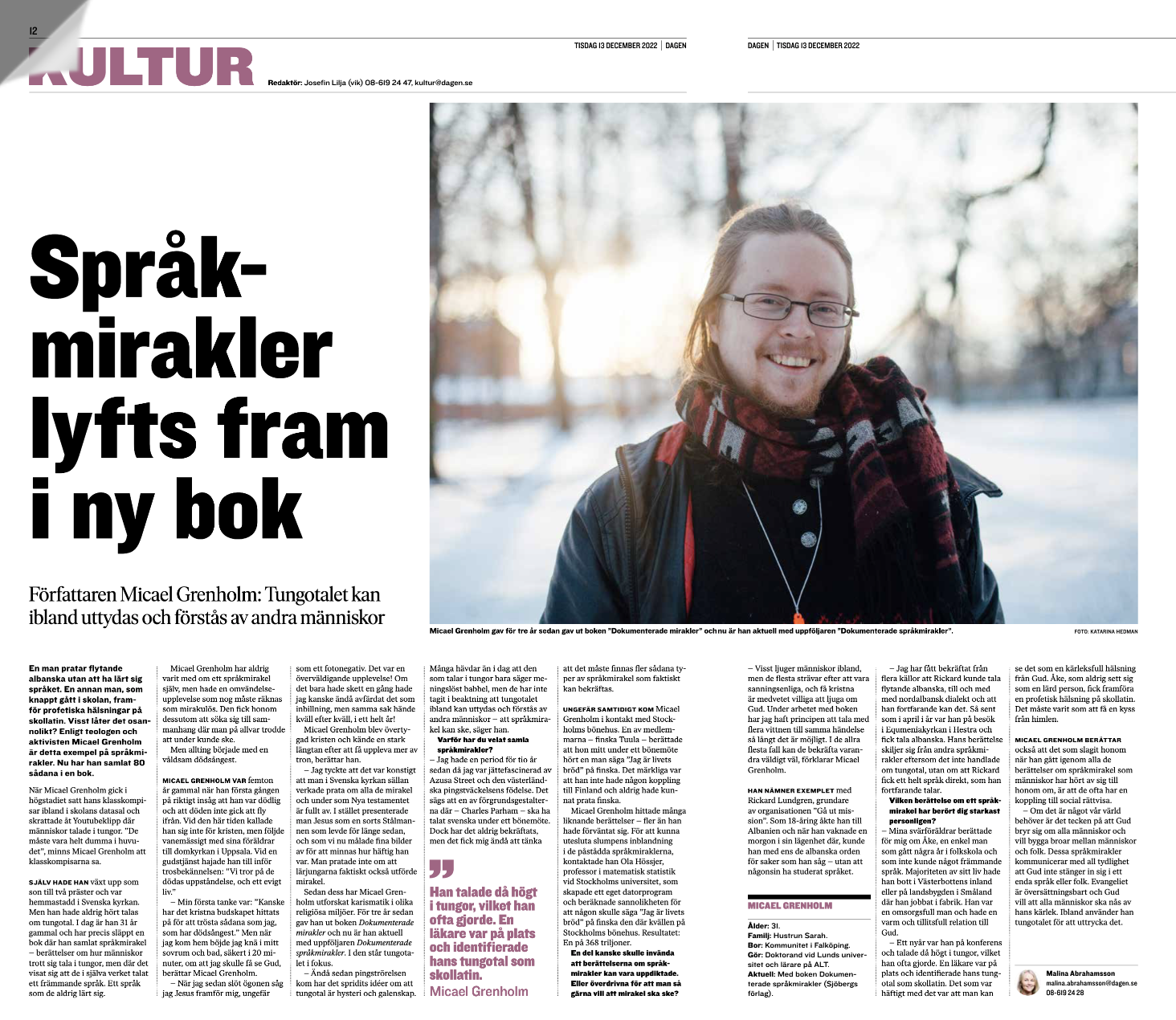 Det här vittnesbördet uppmärksammas även i intervjun med mig i tidningen Dagen!