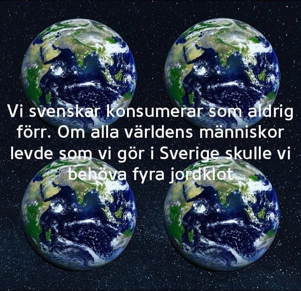 Om alla levde som svenskar skulle det behövas fyra jordklot för att få naturresurserna att räcka till. ![]()