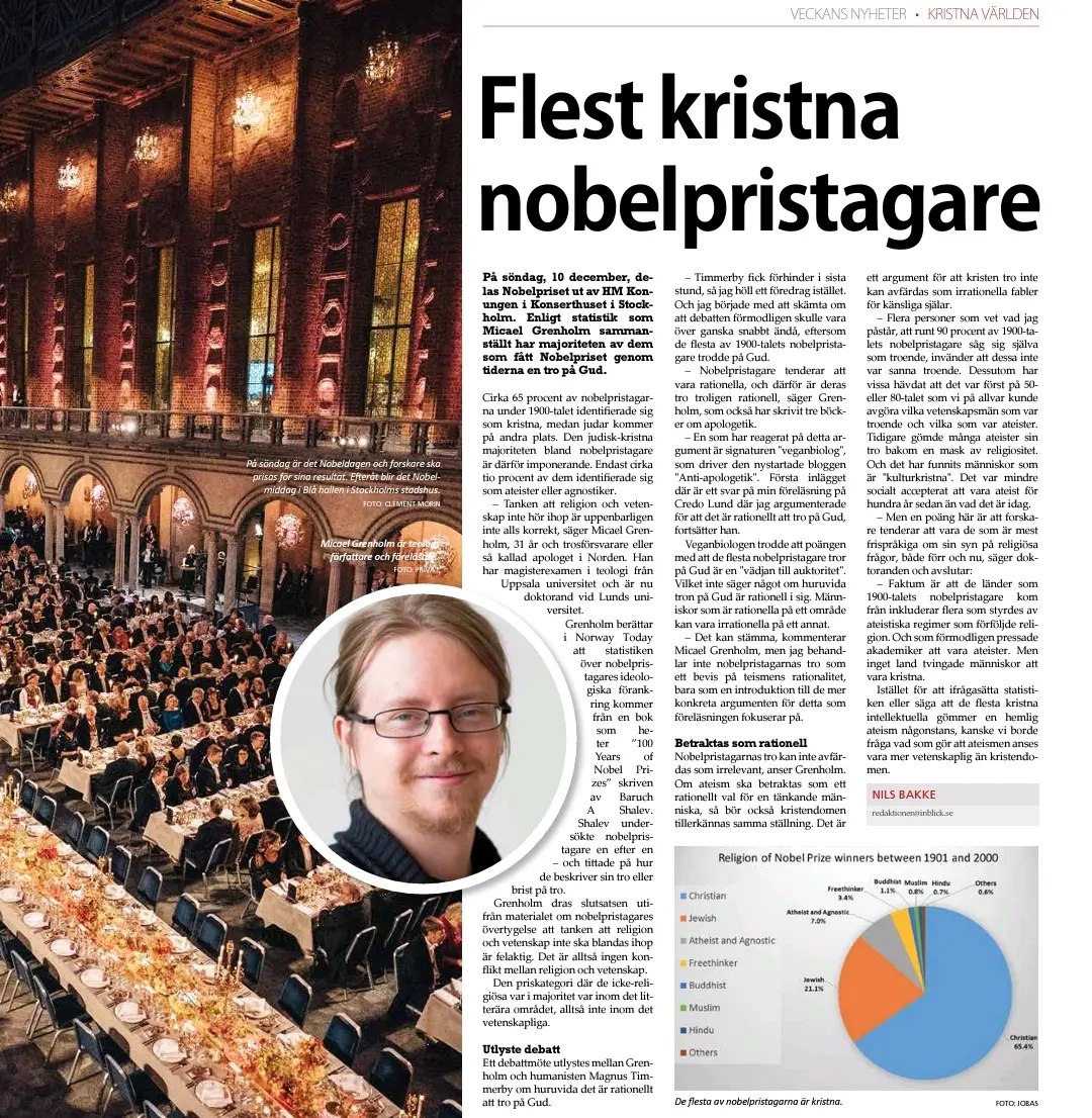Tidningen Inblick publicerade en artikel om detta där en intervju med mig ingick. Där förklarade jag bland annat varför invändningen att många av dessa nobelpristagare inte var troende på riktigt utan garderobsateister inte fungerar. Från artikeln: