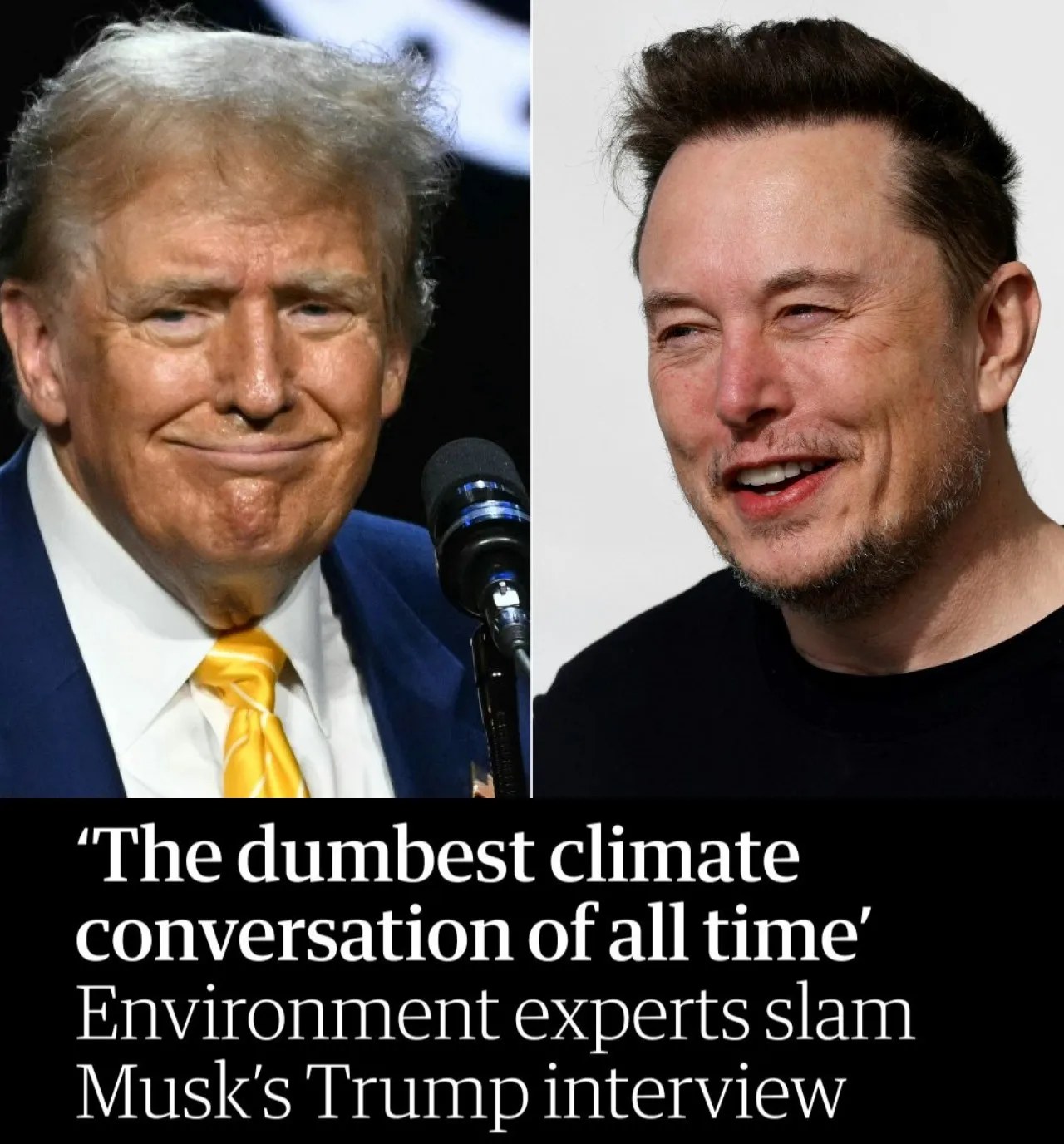 De korrupta miljardärerna Donald Trump och Elon Musk hade ett offentligt samtal nyligen som har kallats för ”det dummaste klimatsamtalet någonsin” av miljöexperter. Trump sa helt sjuka saker som att USA behöver pumpa mer olja istället för mindre och kan fortsätta med det i 500 år till, samt att höjda havsnivåer är bra för att de ger fler strandtomter (!).