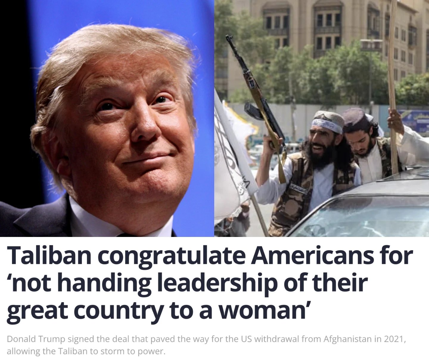 Det här var ju fräscht: talibanerna i Afghanistan firar att Trump blev vald till USA:s president och en av deras högsta ledare gratulerar det amerikanska folket för att de inte lät sig ledas av en kvinna.
