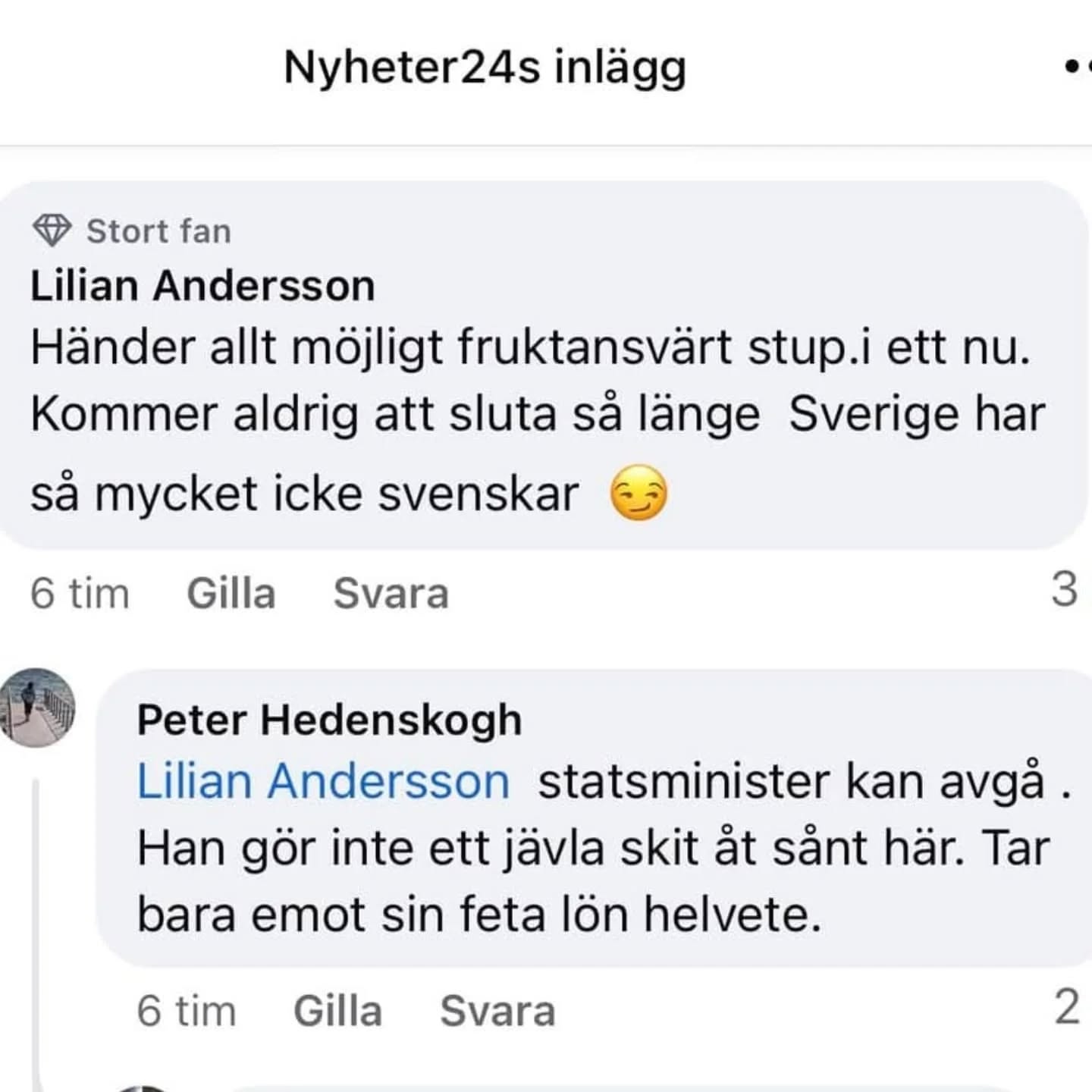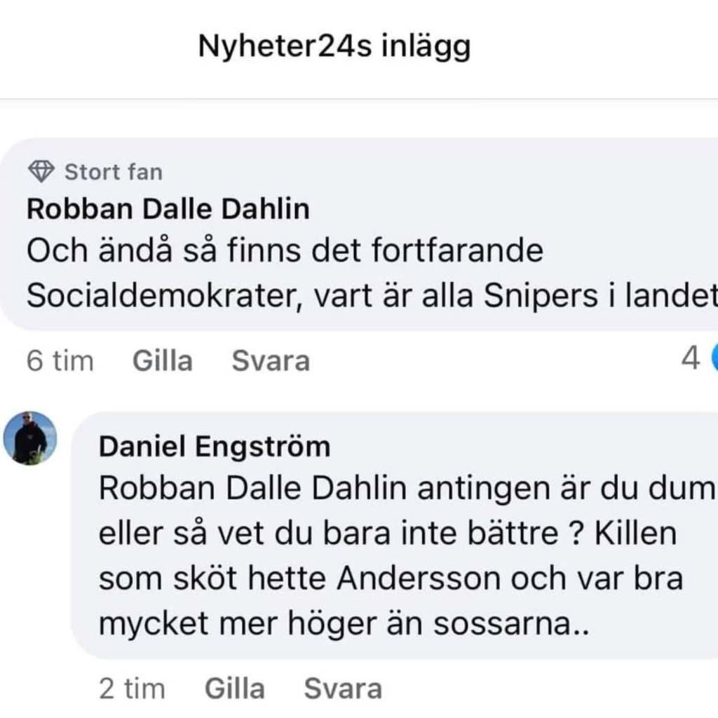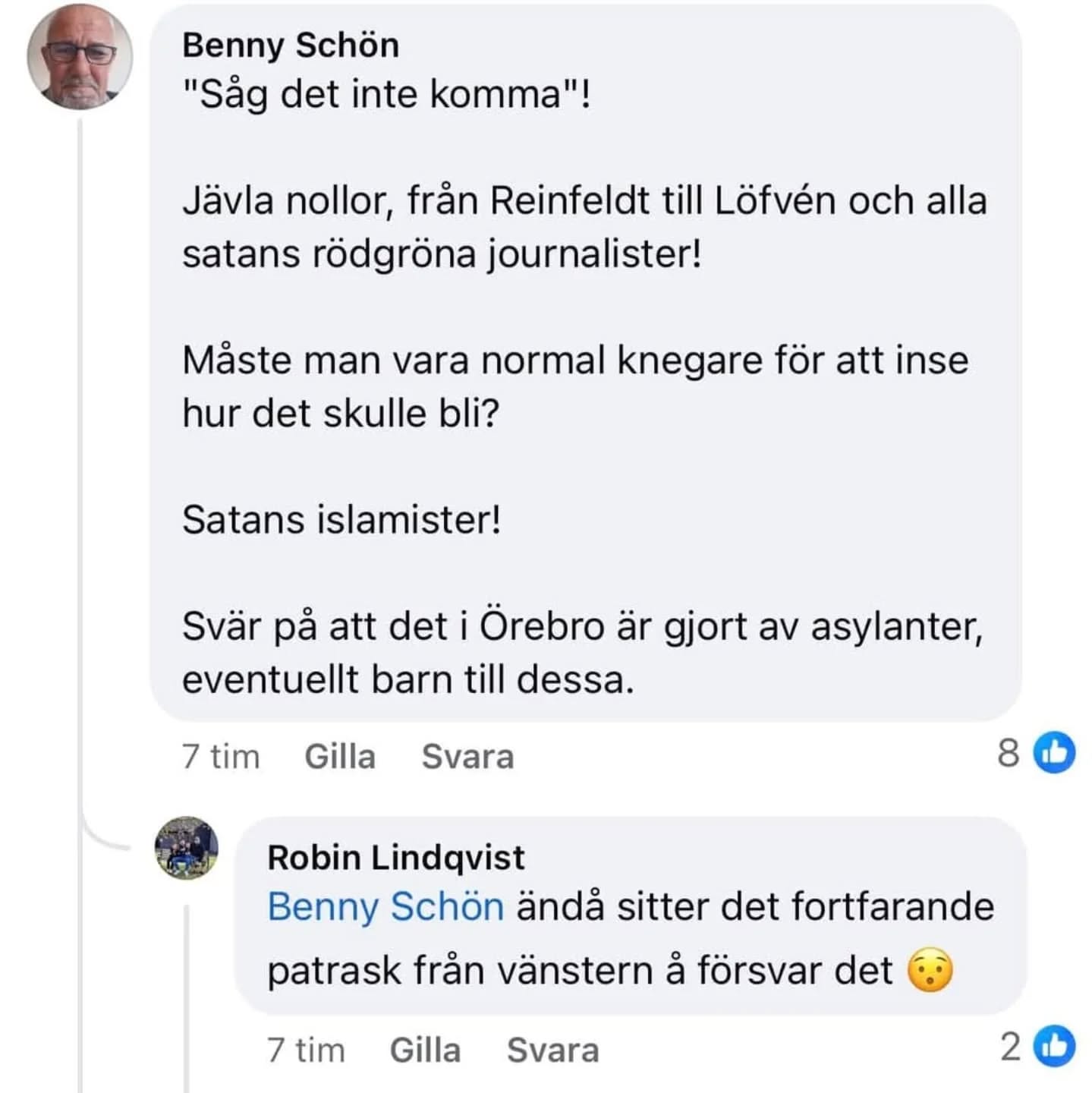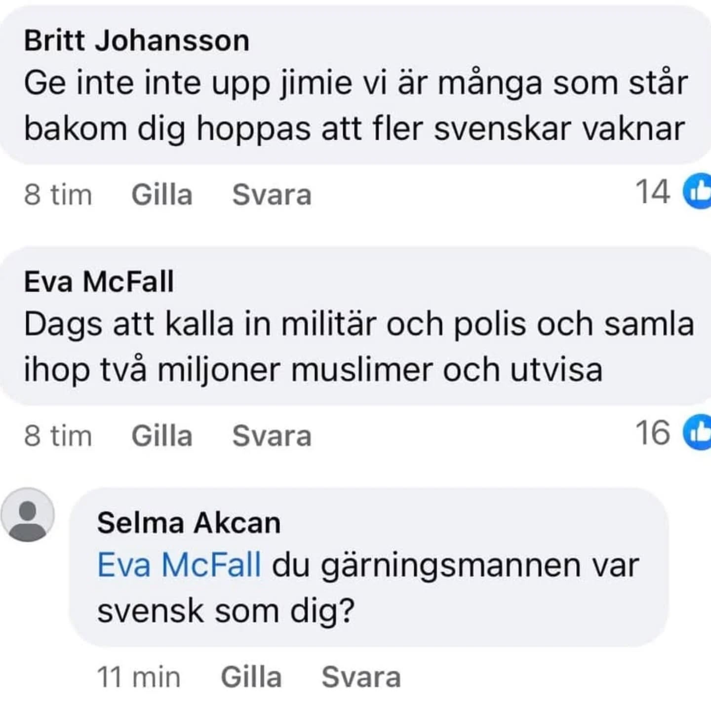 ”Kanske bara några ’Mussar’ som gått åt, då är det ju ingen skada skedd”, ”Sverige behöver 1000 st lasermannen som städar upp lite”, ”Äntligen nån som demonstrerar mot Arab-muslimernas rasism mot svenskarna” är exempel hur det låter i kommentarsfälten.